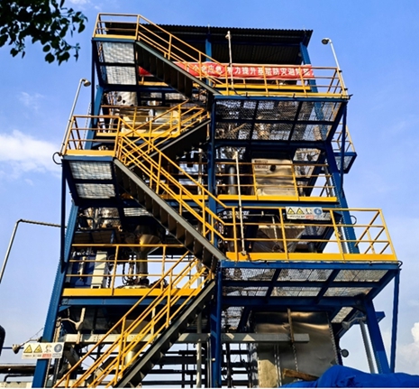 COAP+装置由华能湖南分公司岳阳电厂投资开发、华能清能院研发承建,于2023年底开始建设。该装置在COAP技术的基础上,进一步采用了华能自主研发设计的移动床式二氧化碳吸附工艺和蒸汽加热耦合真空抽吸再生工艺,并配置了分段式低温吸附设备、吸附剂热量回收设备等一系列新型吸附捕集设备,可实现烟气污染物和二氧化碳的高效协同脱除。在试运期间,二氧化碳捕集率达95%,再生热耗0.96吉焦/吨二氧化碳,比常规碳捕集技术降低50%以上。其中,单次吸附即可将二氧化碳浓度从10%提升至90%以上,突破了燃煤烟气低浓度二氧化碳难以通过单次吸附提纯的技术瓶颈。