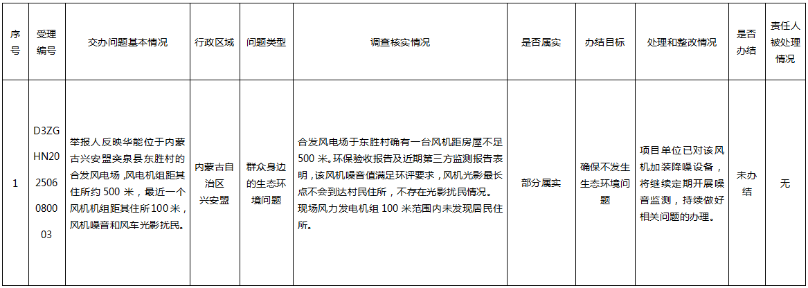 中央生态环境保护督察群众信访举报转办和边督边改公开情况一览表
