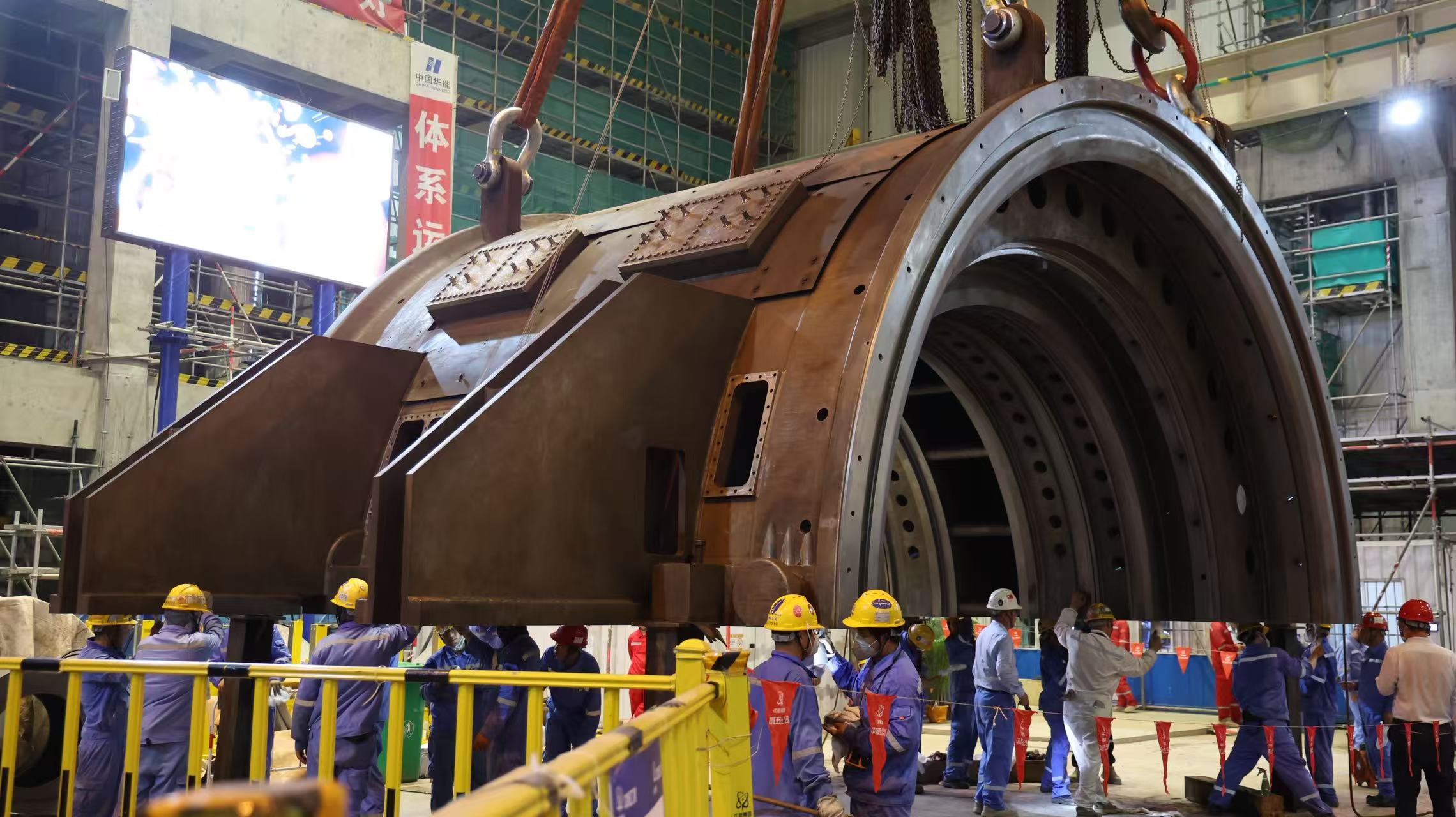 华能海南昌江核电一线建设者们合力吊装大型设备,以实干推进工程项目建设,这是能源项目攻坚的生动缩影,更彰显着决胜“十四五”的奋进姿态。摄/黄钰坤