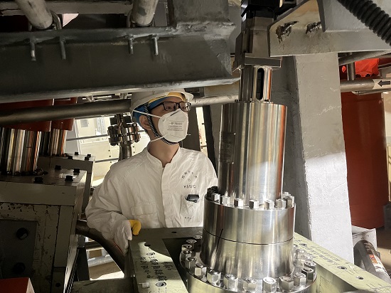 在石岛湾高温气冷堆示范工程大修期间,核能技术研究院全面开展示范工程首次大修技术支持工作。该图为技术支持团队成员在专项现场完成检修任务。