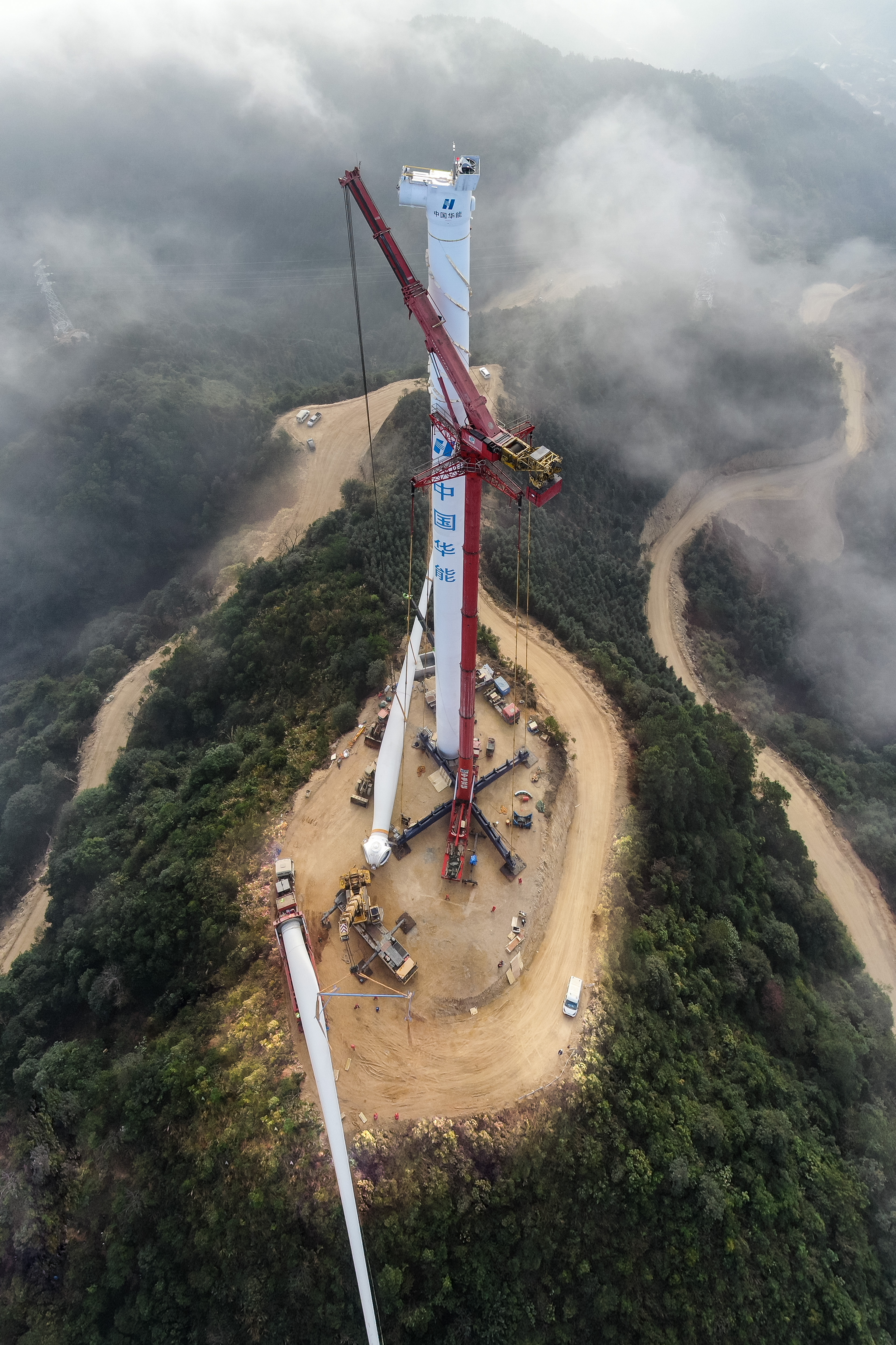 《云雾山林里的风机吊装》 广西分公司 刘新源